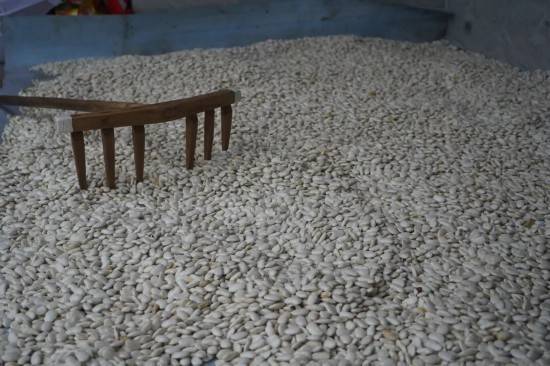 海沧村署场组地处高寒山区,气候条件适宜云龙白芸豆生长,这里几乎家家户户都种植白芸豆,少则2到3亩,多则上百亩,白芸豆已成为当地群众增收的致富产业。杨维松是当地种植白芸豆面积最大的一户,在晾晒场上,他的父亲和云龙县济农种植专业合作社的技术员李振华正用连枷拍打晾晒好的白芸豆,一扬一拍间睿迎网,白芸豆便从壳中剥落。“我家今年种了白芸豆120亩,目前卖了3吨多,收入5万多元,今年预计产量在15吨左右、收入在30万元左右。这几年白芸豆市场行情好,价格也稳定,我准备明年再租一些土地,计划种植200亩左右的白芸豆。”杨维松一边忙着晾晒白芸豆一边如是说道。